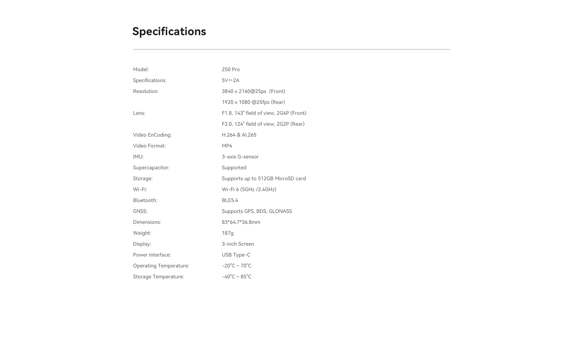 Model: Z50 Pro