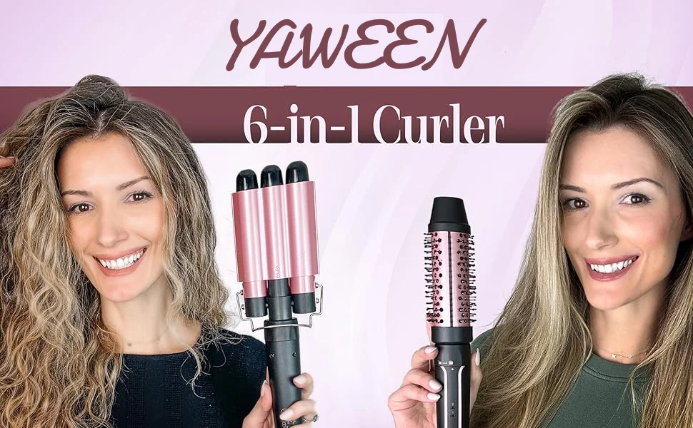 Embark on a styling journey with the YAWEEN 6-in-1 curling wand set—a global companion with dual voltage (110-240V AC). Featuring an array of barrels, from a lively 1-inch 3 barrel crimper to a precise 0.3-inch for tight curls, this set adapts to every style. Designed for beginners, it offers quick transitions between wand sizes for hassle-free styling. Prioritizing safety and comfort, the premium ceramic barrel and anti-scald tip are your styling allies. Achieve 410°F in just 30 seconds for instant salon-grade curls or waves. Beyond time and money savings, this interchangeable large barrel curling iron set also makes for an ideal gift for women on special occasions—inviting the joy of DIY hairstyling and allowing each session to express your unique creativity.